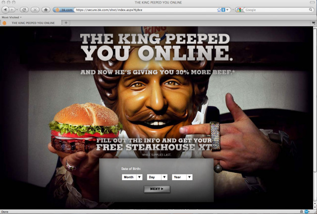 Interactive Coupon Promotion for the Steakhouse XT burger. We gave away free Steakhouse XT burgers live for 48 hrs straight on Chatroulette.